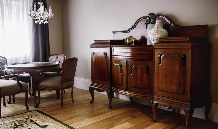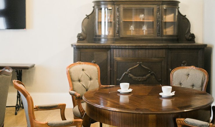 В номере: вешалка, зеркало, комод, кровать двуспальная, набор мягкой мебели, прикроватные тумбочки, стол, столик журнальный, столик туалетный, стулья, шкаф, кондиционер, кофемашина, сейф, телевизор ЖК, телефон