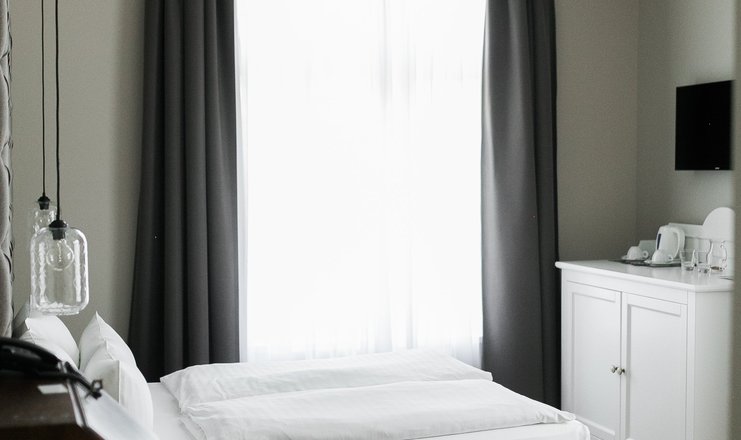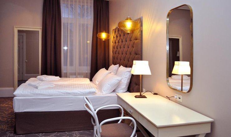 В номере: кровать двуспальная, прикроватные тумбочки, стол, стулья, шкаф, кондиционер, кофемашина, сейф, телевизор ЖК: спутниковое ТВ, телефон