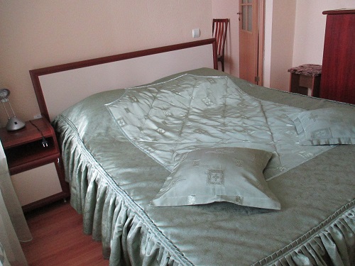 В номере: диван, телевизор, телефон, холодильник, радио, стенка-горка с посудой, журнальный столик, двуспальная кровать, комод.