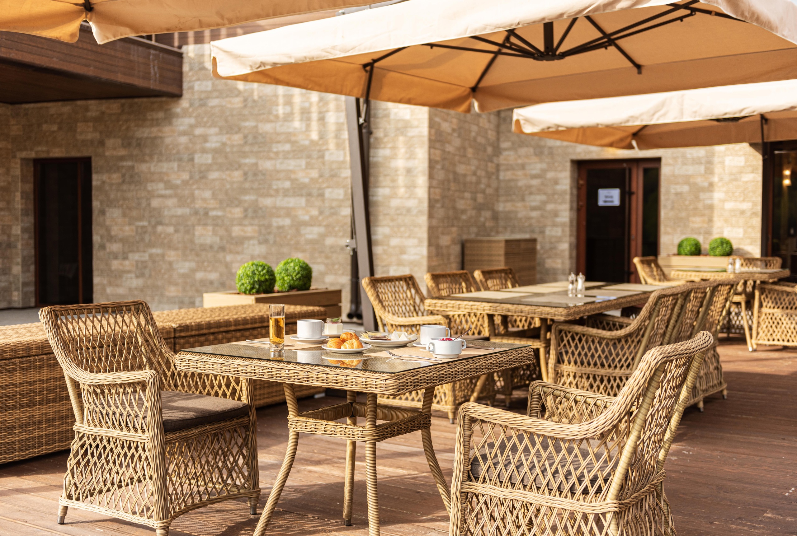 Особенным местом в летний период является живописная терраса ресторана. Здесь каждый посетитель может насладиться великолепным закатом и дружескими разговорами в окружении панорамного вид на горы. Эти моменты станут прекрасным воспоминанием вечера и отличным поводом для создания красивых фотографий. Ресторан рассчитан на 80 посадочных мест, обеспечивая комфортное пространство для всех посетителей.