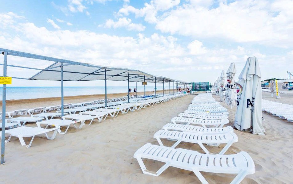 Собственный пляж отеля находится всего в 7 минутах ходьбы. Песчаное побережье оборудовано всем необходимым для комфортного отдыха: шезлонгами, навесами, раздевалками и детской игровой зоной, что делает пребывание на море безопасным и приятным для всей семьи.