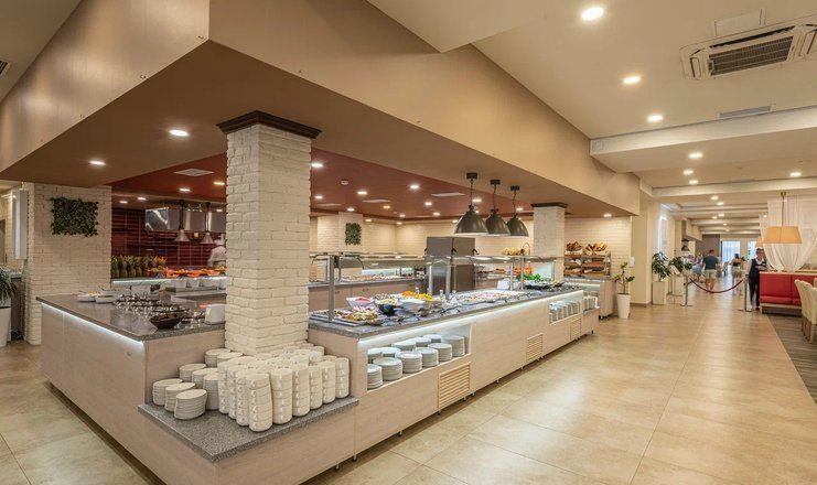 В нашем основном ресторане гости питаются по системе «Шведский стол». Меню на 7 дней включает блюда из стран Черноморского и Карибского бассейнов. Регулярно проводятся тематические ужины. Взрослое меню включает в себя салаты и закуски, супы, вторые блюда из мяса, курицы, рыбы, овощей, каши, выпечку, фрукты и овощи. Для обеда и ужина предлагаются прохладительные напитки, чай, кофе, какао, слабоалкогольные и алкогольные напитки. Есть возможность заказать стол низкокалорийного питания. Для маленьких гостей у нас есть детский зал с особым оборудованием и детское меню. Мы используем только продукты, которые не нанесут вред малышам, а подадут им энергию на весь день. Кроме того, в нашем зале можно воспользоваться стерилизатором, подогревателем для бутылочек и микроволновой печью для приготовления детского питания. |