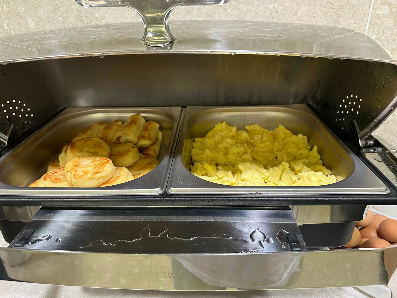 - Горячие блюда на выбор: омлеты, яичница, каши на молоке или воде