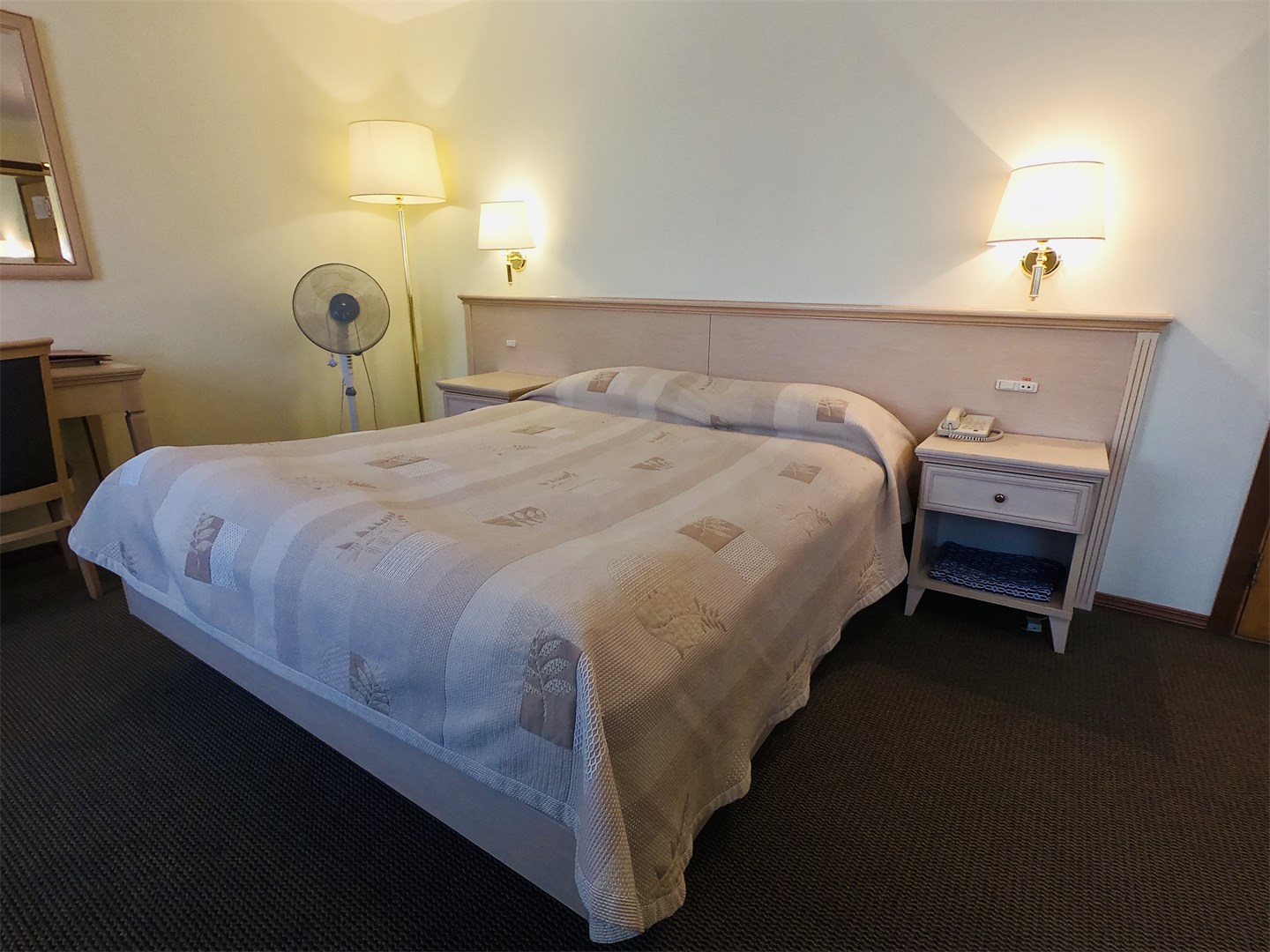 Отель находится в 5-этажном здании и предлагает различные комфортабельные номера. В номерах есть удобная мебель, телевизор, Wi-Fi, сейф, мини-холодильник и чайник. Санузел оснащен ванной, феном, тапочками, халатами и косметическими принадлежностями.