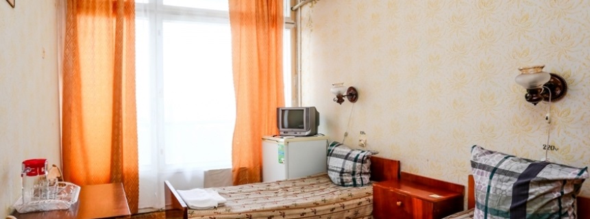 В номере: кровати, шкаф, тумбочка, холодильник, телевизор, вентилятор по требованию