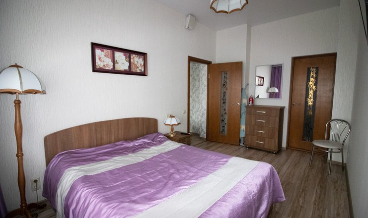 В номере: Прихожая: шкаф-купе, сейф, зеркало, вешалка для верхней одежды. Мини-кухня: кухонный уголок, микроволновая печь, набор посуды, холодильник. Гостиная: раскладной диван, журнальный столик, ЖК телевизор, 3 стула, стол. 1 спальня: кровать 1,60 м., 2 тумбочки, ЖК телевизор, кондиционер, комод, зеркало. 2 спальня: кровать 1,60 м., 2 тумбочки, ЖК телевизор, кондиционер, комод, зеркало.