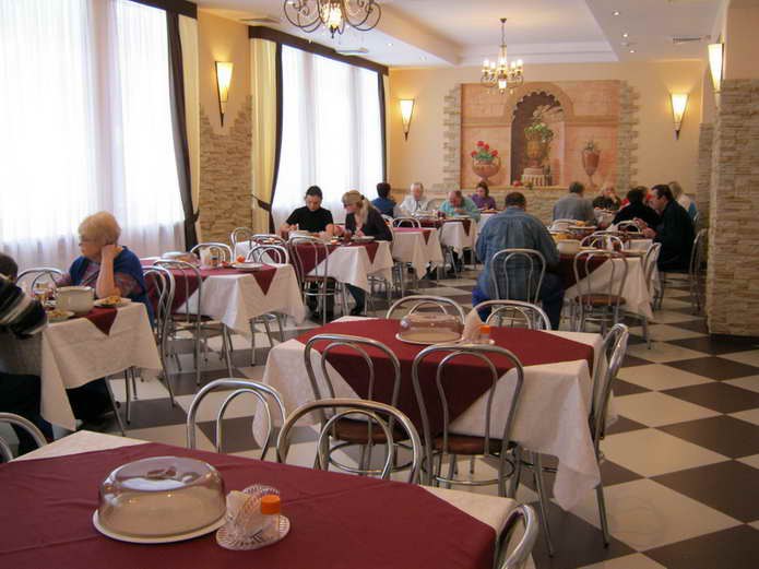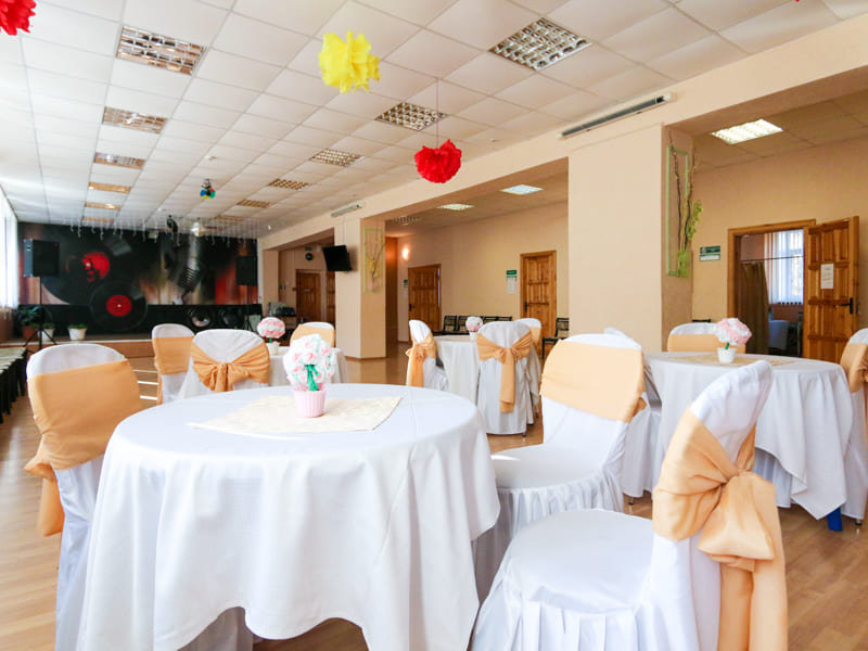 В санатории «Радуга» организовано 5-ти разовое питание по системе «заказное меню» с элементами шведского стола в одну смену. Приемы пищи проходят на первом этаже в главном корпусе. Один обеденный зал рассчитан на 80 мест. Опытный диетолог и шеф-повар всегда смогут подобрать такие блюда, что бы удовлетворить даже самого взыскательного клиента.
