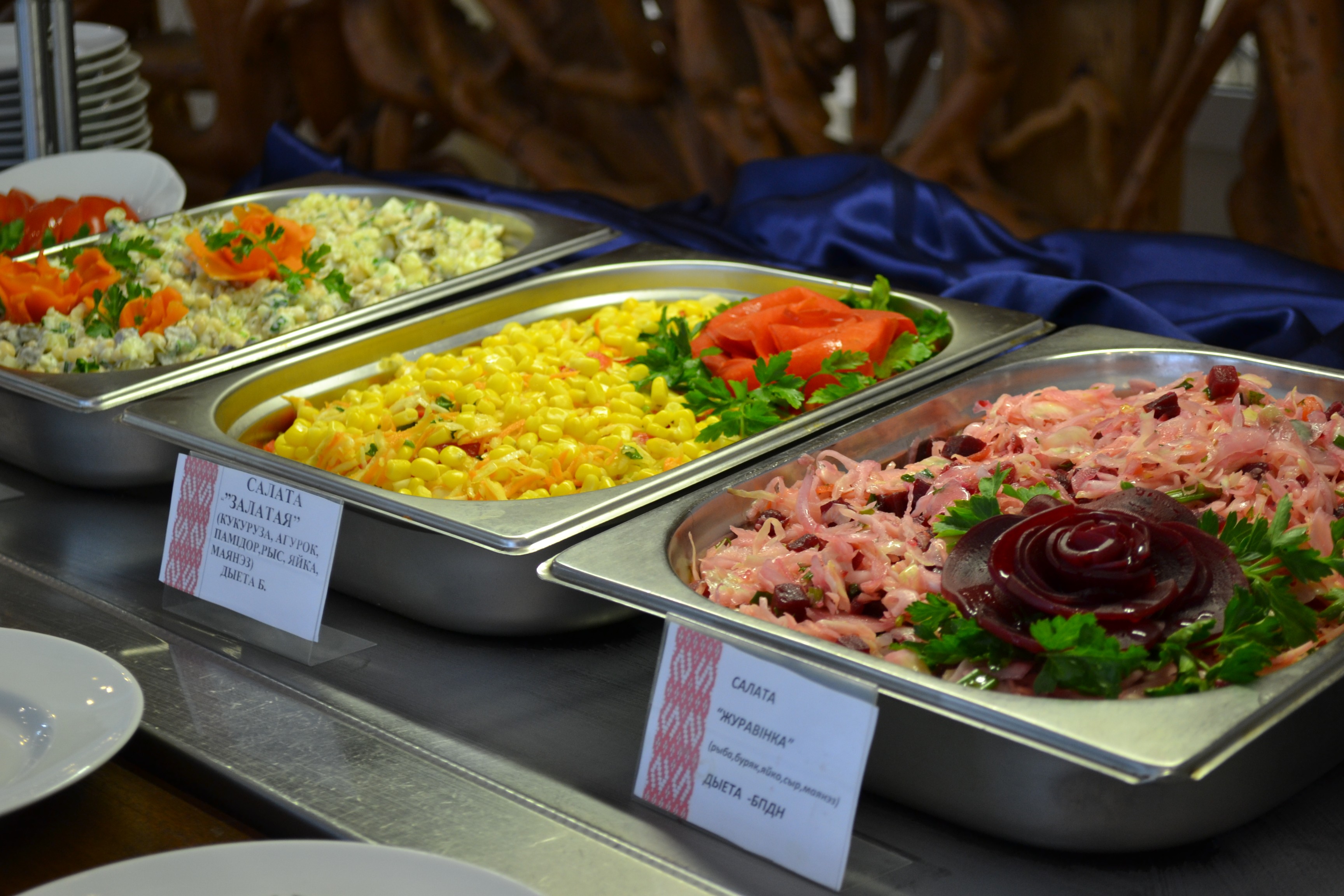 В нашем санатории мы уделяем большое внимание не только лечению и оздоровлению, но также и питанию наших гостей. Мы предлагаем разнообразное трехразовое питание по типу "шведский стол" в двух обеденных залах корпуса "Главный" на 1 этаже.