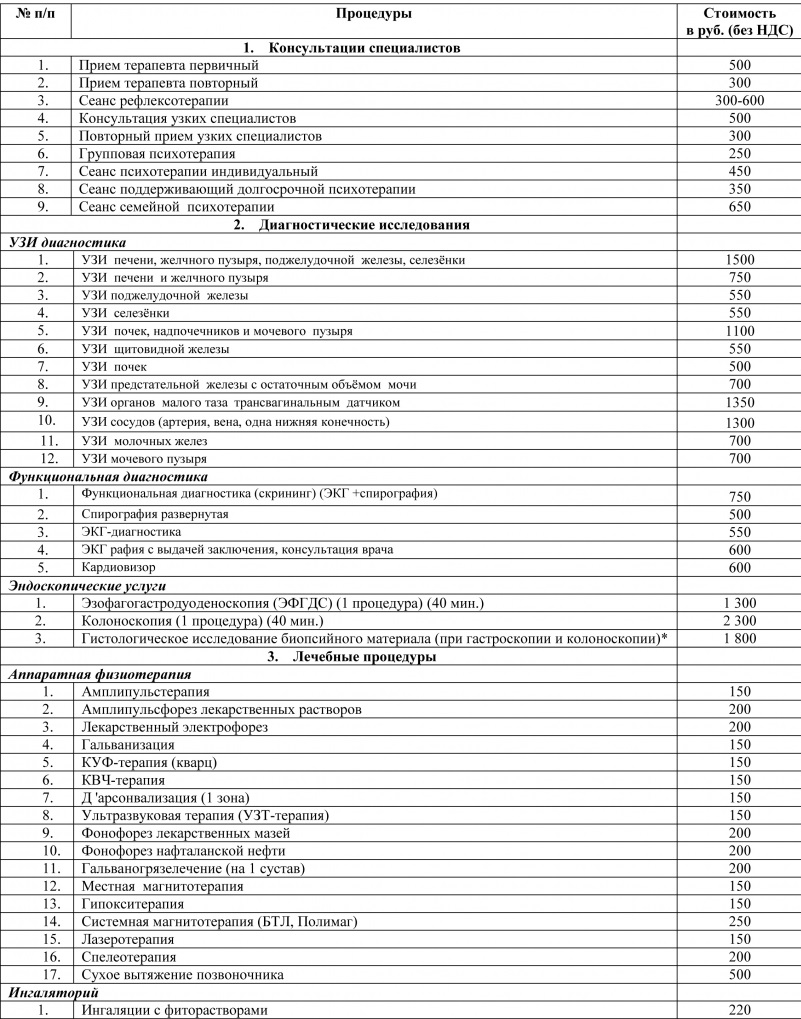 Цены на мед. услуги