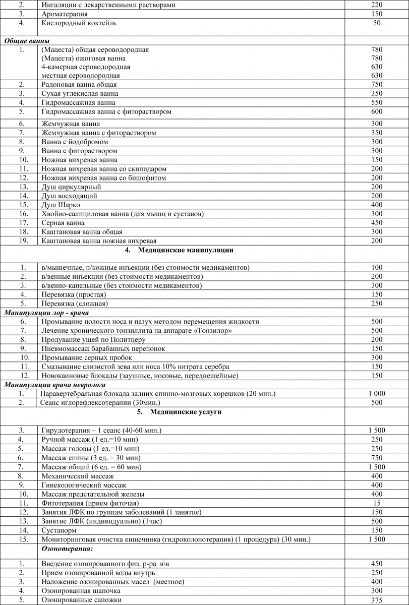 Цены на spa услуги