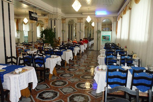 В столовой отдыхающие питаются просто по «королевски», ведь она оформлена по мотивам галереи и названа «Версальским залом». Для тех, кто проживает в номерах люкс, предусмотрен отдельный зал. Красивая окружающая обстановка, сервировка столов, умелое обслуживание без сомнения создадут хорошее настроение.