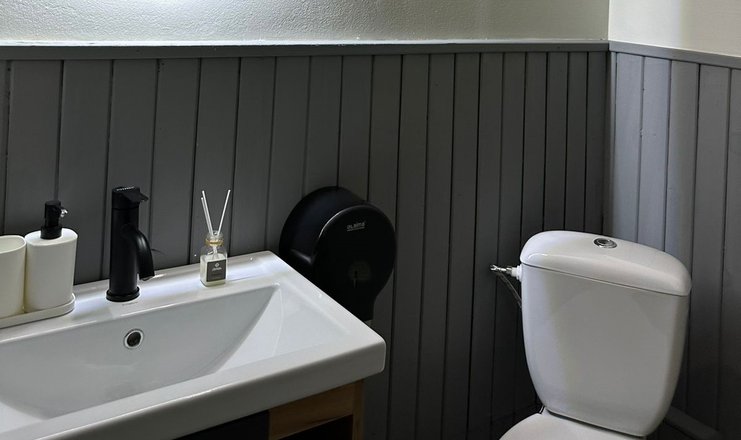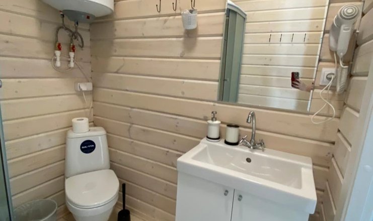 Санузел: душ, раковина, унитаз, фен