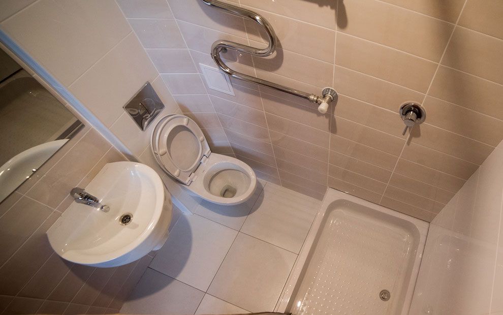 Санузел: душ, раковина, унитаз, биде, фен